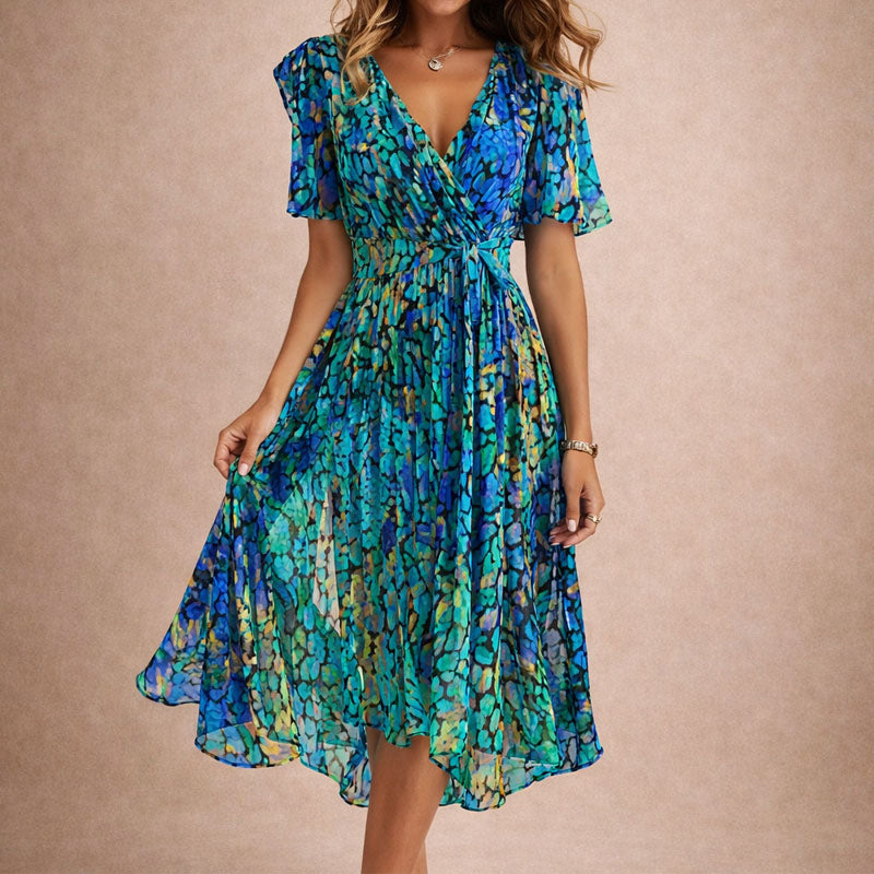 Giulia Bellini Pleated V-Neck Midi Dress